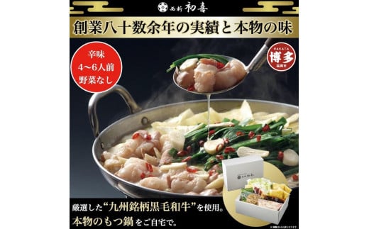 - 【九州銘柄産 黒毛和牛】博多もつ鍋 西新初喜の辛味4~6人前 野菜なし【離島配送不可】