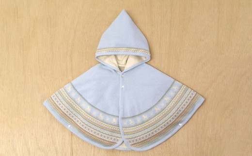 - 【ブルー】 ジャガード マント ブルージャガード CO-W-17-32【7営業日程度で発送】| ベビー ベビー服 赤ちゃん 服 ファッション フード 羽織り 生成 キナリ オーガニック タージマハル綿