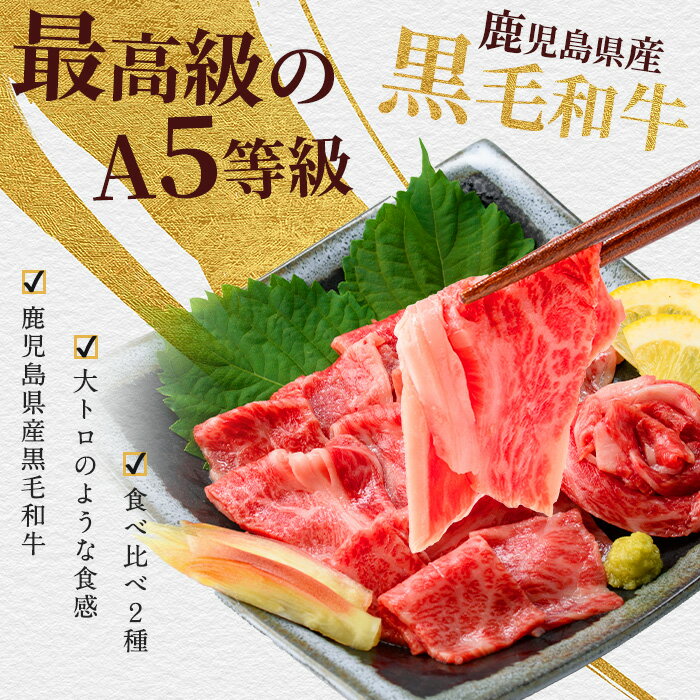 【ふるさと納税】まるで大トロ!とろけるくちどけのA5等級!鹿児島県産黒毛和牛牛刺し2種盛り(計300g・150g×2) 牛刺身 牛刺し ユッケ 牛 牛肉 生食 肉寿司 霜降り 冷凍 肉 黒毛和牛 和牛 国産 A5 【カミチク】