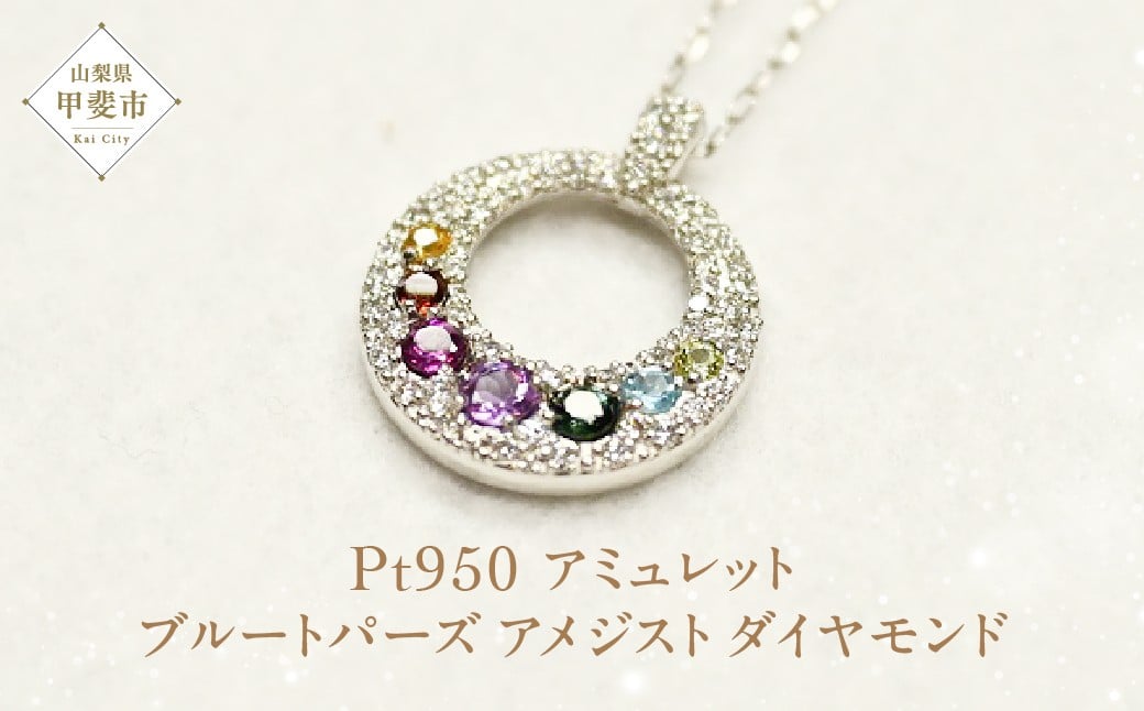 Kpe2293-1 Pt950 アミュレット [山梨 ネックレス 宝石 ブルートパーズ アメジスト ダイヤモンド ジュエリー]