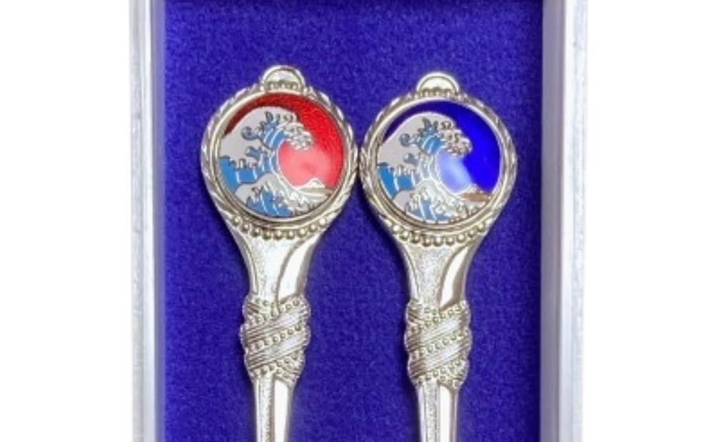 - 北斎 小 スプーン・フォークセット【東京七宝】