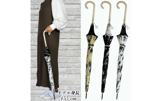 - 晴雨兼用傘 レディース 長傘 大きめ 花柄 ワンタッチジャンプ 165202 ベージュ / まちづくり観光振興機構 UV防止加工 紫外線対策 全天候型 奈良県 田原本町