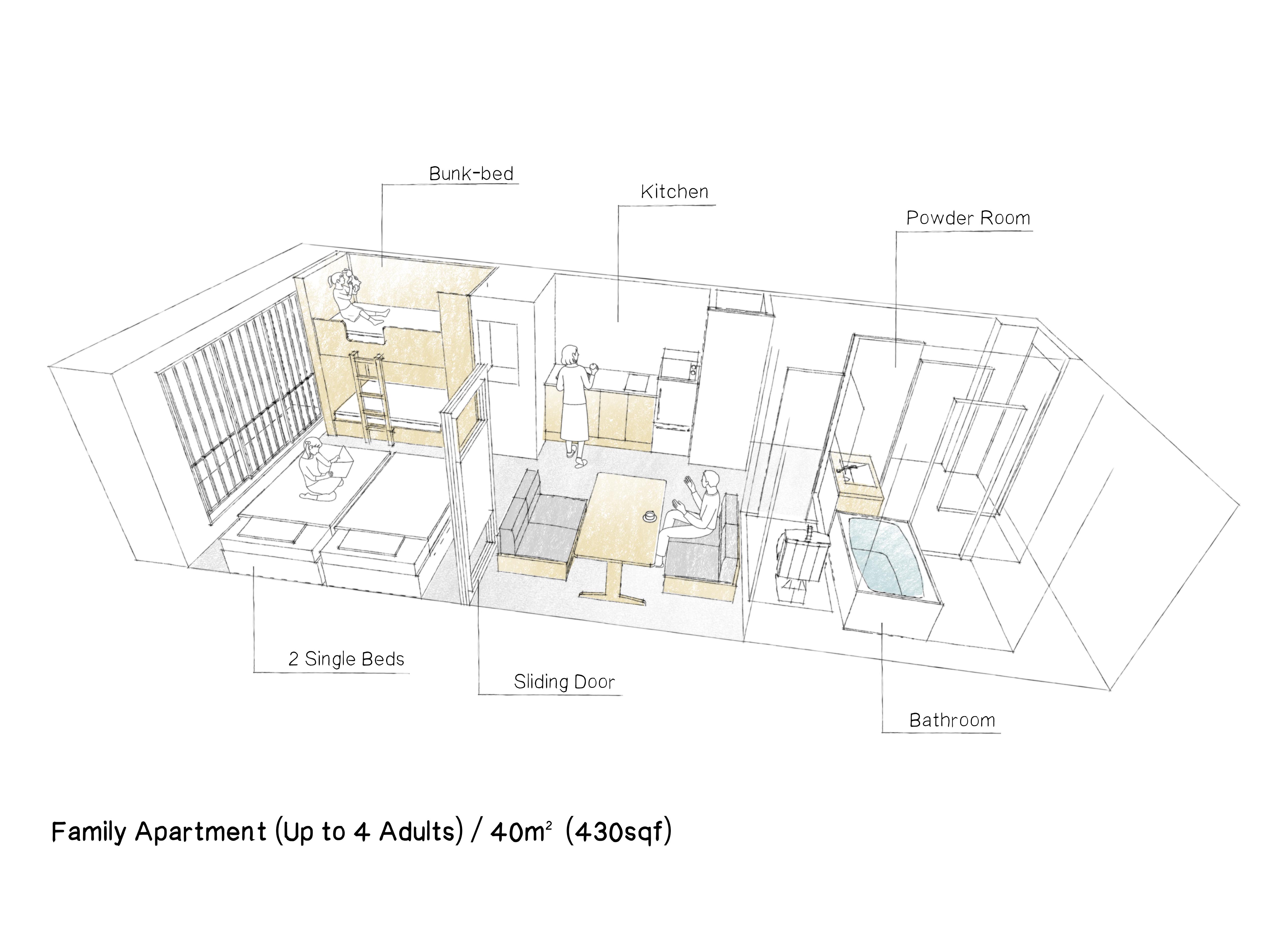 【MIMARU京都 新町三条】平休日1泊食事なし 2~4名宿泊券《1ベッドルームファミリーアパートメント》(ミマル キョウト)[ 京都 旅行 宿泊 ホテル 旅館 人気 おすすめ 割引 チケット クーポン 観光 トラベル 宿 ] 261009_A-LA042