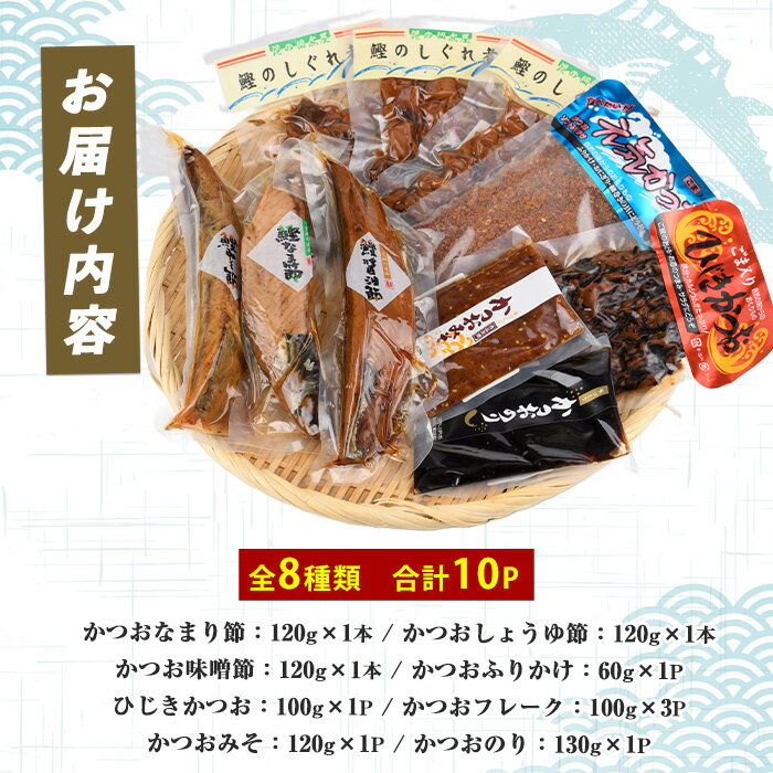 【ふるさと納税】かつお尽くしご飯のお供とおつまみセット(合計1kg超・8種10P) かつお カツオ 鰹 なまり節 ふりかけ 味噌 のり ご飯のお供 おつまみ 肴 【指宿山川水産合同会社】