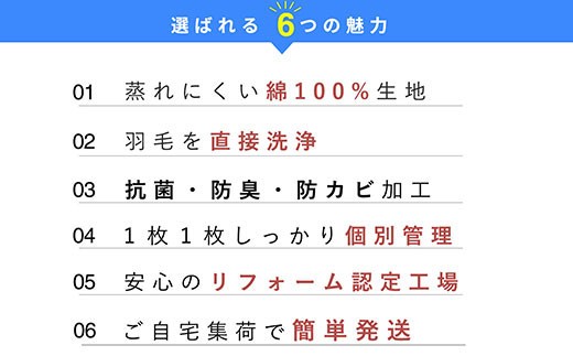 - 羽毛布団 打ち直し ダブル掛け1枚→シングル掛け1枚 【ベーシックコース】 冬用 綿100% リフォーム