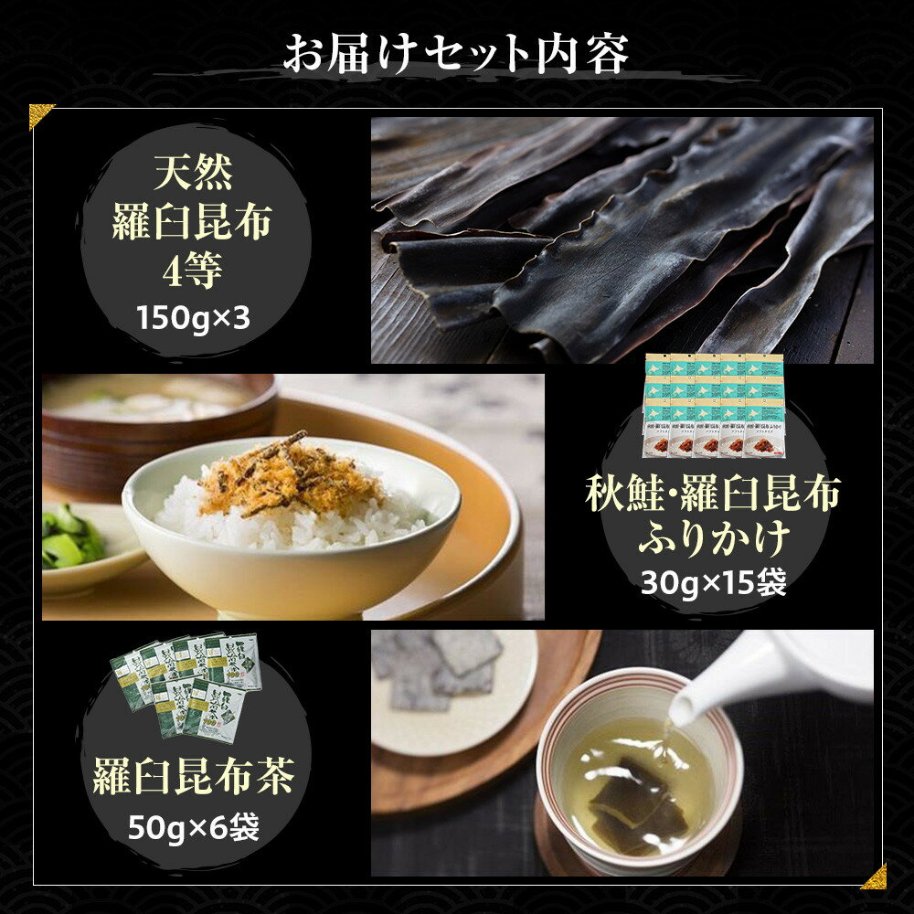 - 【ふるさと納税】天然 4等 450gセット×昆布ふりかけ×昆布茶 北海道 知床 羅臼産 生産者 支援 応援