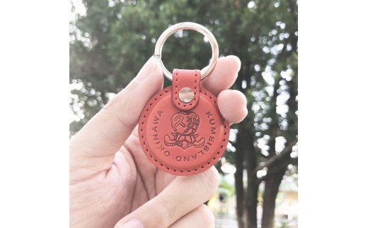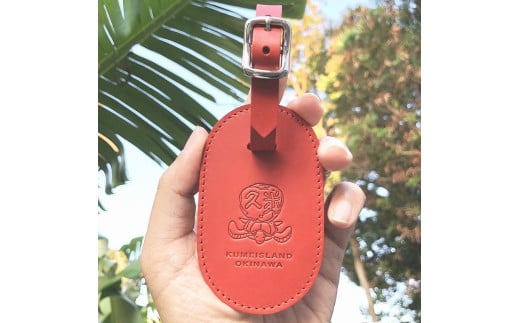 - 久米島の亀ロゴ入り革製ラゲッジタグ(赤)&キーホルダー(2枚革赤)