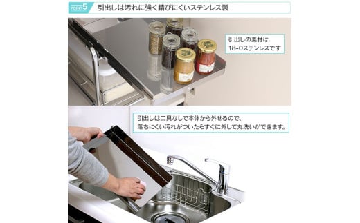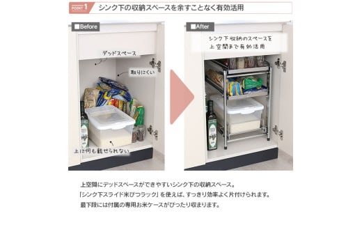 - シンク下スライド米びつラック 「ハイタイプ」燕三条製 米びつ お米ケース 引出し シンク下 収納 スライド シンク下スライド キッチン下 ステンレス棚 フライパン 鍋 なべ 棚 引出し キッチンラック キッチン収納 台所収納 日本製 [川口工器]【039S017】