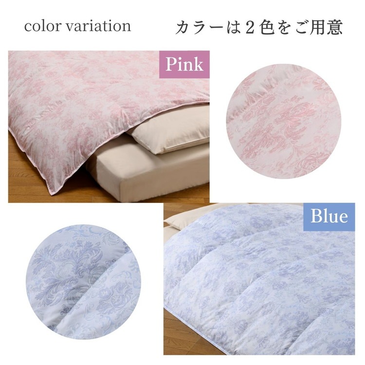 - <京都金桝>特殊2層キルト 羽毛布団 ロワーレ(ポーランド産マザーホワイトグースダウン95%・たっぷり1300gふっくら仕上げ)カラー:ピンク ≪国内再洗浄 DP420≫