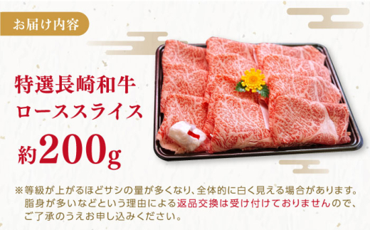 【着日指定 可能】特選 長崎和牛 ローススライス 約200g 平戸市 / 萩原食肉産業 [KAD343]