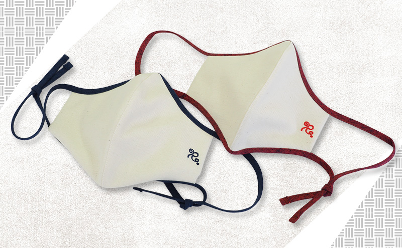 - 侍マスク<高機能・安全素材身頃(無蛍光、無晒)> Lサイズ2枚 セット (紐は無蛍光 無晒白と先染久留米織の2種類) 肌にやさしい