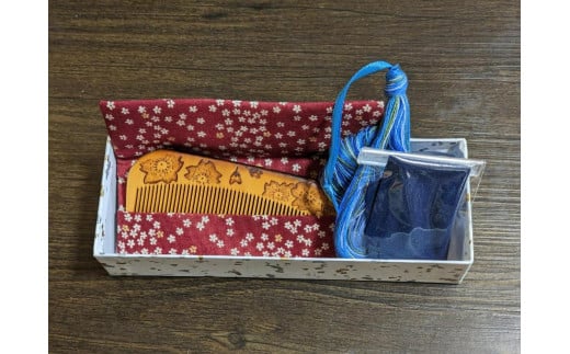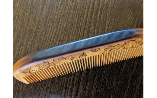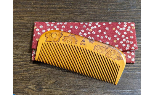 つげ櫛の櫛留商店 本つげ材焼絵櫛(すす櫛細歯)袋付