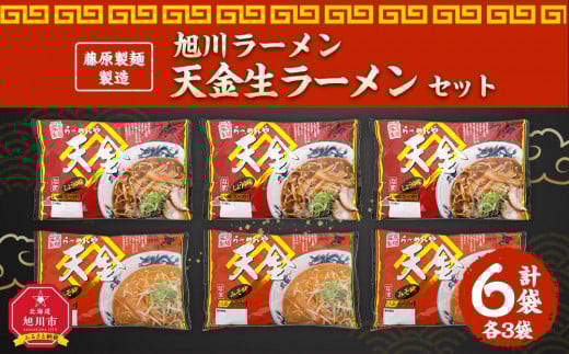 - 藤原製麺 製造 旭川ラーメン 天金生ラーメンセット ( 天金醤油、天金味噌 )各2袋入り×3袋