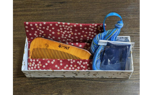 【鹿児島県指定 伝統的工芸品】薩摩つげ櫛(解櫛)・手作り布ケースセット※約10.5cm(喜多つげ/029-1111)