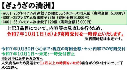 - 【ふるさと納税】A001-25 プレミアム冷凍餃子24個としょうゆラーメン3人前