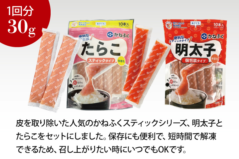 かねふく スティック 食べ比べセット 明太子 20本 (10本×2袋) ・ たらこ 20本 (10本×2袋) 合計1.2kg ばらこ 個包装 無着色 茨城 大洗 めんたいパーク めんたいこ たらこ チューブ 冷凍 パスタ スパゲッティー おにぎり 小分け 使い切り 家庭用 調味料 簡単 時短