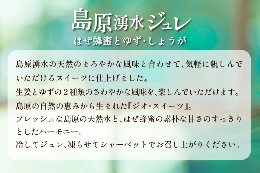 - CA011 暑い季節はシャーベットで 島原湧水ジュレセット[スイーツ ジュレ はちみつ 蜂蜜 北田物産 長崎県 島原市]