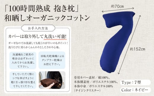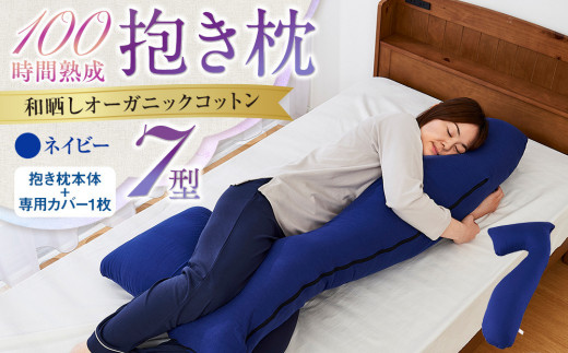 「100時間熟成 抱き枕」和晒しオーガニックコットン7型 (ネイビー)