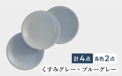 - 【美濃焼/みずなみ焼】 しのぎ プレートM 4個セット くすみグレー・ブルーグレー 瑞浪市 / 山喜製陶 食器 皿 パン皿 [AZCP021]