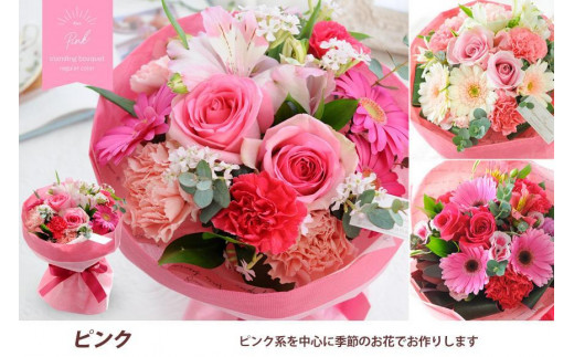 【水換え・花瓶のいらない花束】 そのままブーケ ピンク系 スタンディングブーケ