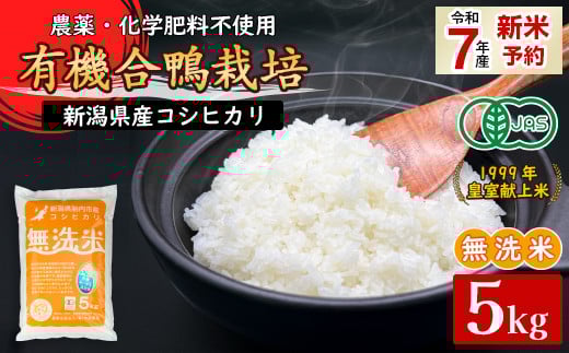 16-M8新潟県産【無洗米】有機JAS合鴨栽培コシヒカリ5kg