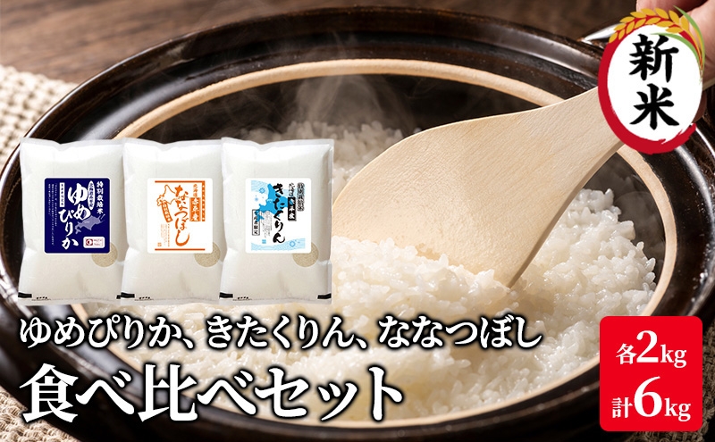 - 【先行予約2025年産米・11月上旬より順次出荷】北海道 赤平市産 お米 食べ比べ セット 計6kg(ゆめぴりか・ななつぼし・きたくりん各2kg) 精米 米 北海道米