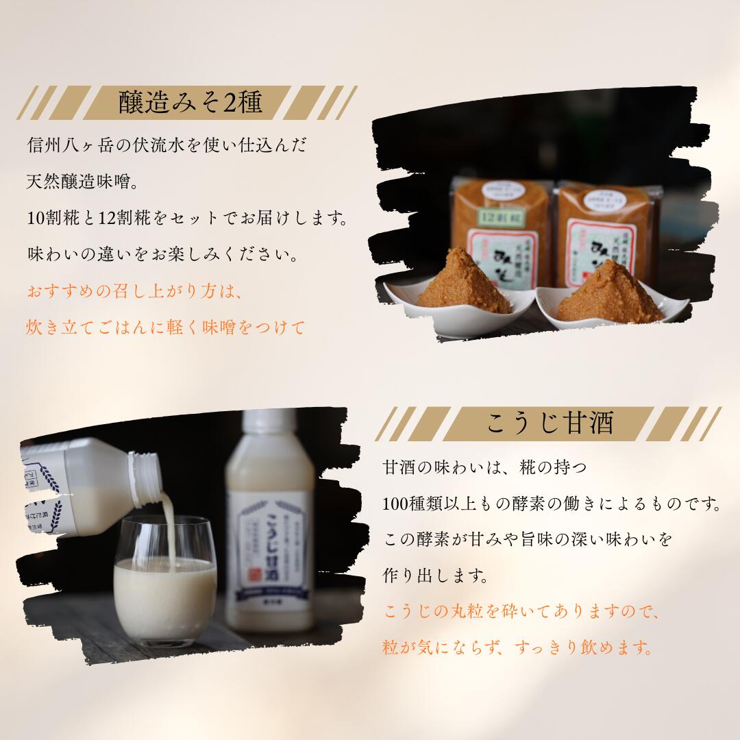 【ふるさと納税】山本屋糀店 老舗糀屋の糀だけで造った甘酒2本と天然醸造みそ2種セット(甘酒520g×2本 天然醸造みそ(中甘口)1kg×1個 天然醸造みそ(甘口)1kg×1個)[YK-108]