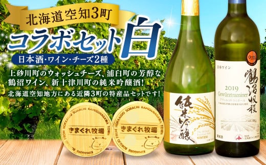 - 北海道空知3町コラボセット(白)(上砂川町・浦臼町・新十津川町)チーズ ワイン 白ワイン 純米吟醸酒 セット【2025年5月下旬迄発送予定】