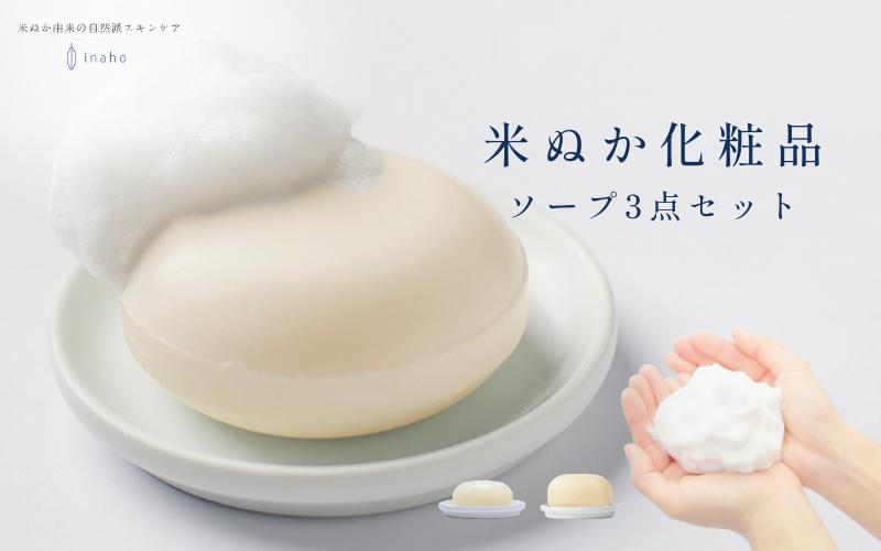 米ぬか化粧品・ソープ3点セット 『イナホ(inaho)』(3) inaho人気No.1のフェイシャルソープ2個とボディソープ1個のセット