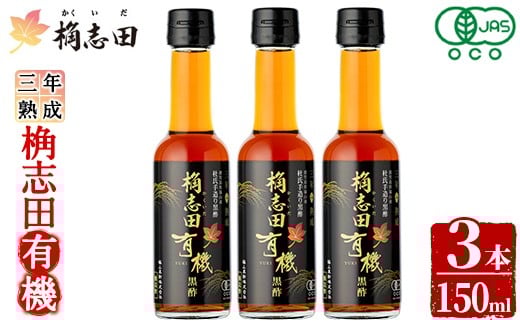 - K-406 三年熟成 桷志田 有機(150ml×3本)【福山黒酢】霧島市 黒酢 醸造酢 かくいだ 桷志田 お酢 調味料