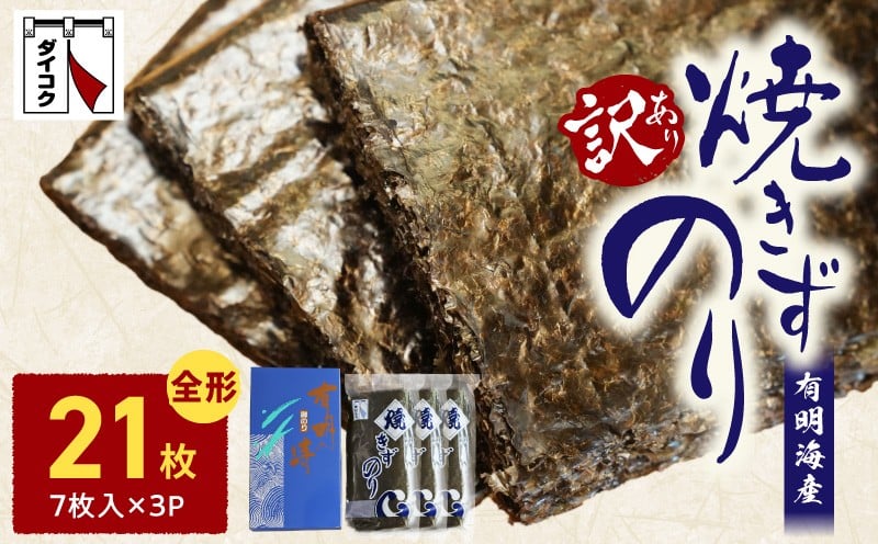 - 121-12 大黒産業 焼きずのり (全形10枚)3パック 海苔 焼きずのり 全形10枚 × 3パック 焼海苔 手巻き寿司 訳あり 国産 小分け 有明海 乾物 おにぎり おむすび お弁当 パリパリ 朝食 おつまみ お取り寄せ 大黒産業 食品 海藻 のり 有明海苔