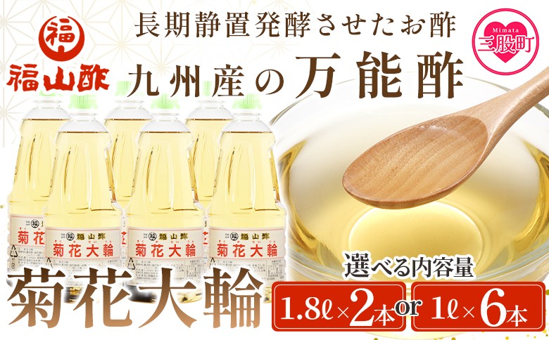 <菊花大輪 1.8L×2本>(計3.6L) 九州産の万能酢 合わせ酢 寿司酢 ビネガー 調味料 チキン南蛮 ピクルス 発酵熟成 贈答 ギフト gift おすそ分け セット 御酢 お酢 贈り物 プレゼント 普段使い 料理 アレンジ 【MI006-fy】【福山酢販売有限会社】