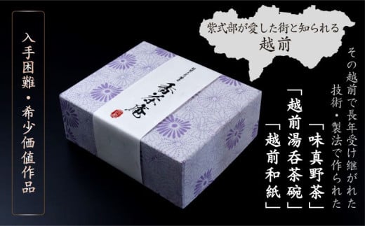 【日本茶/湯呑・高級ギフトセット】【越前三匠の響宴 香茶庵】~青製煎茶製法「味真野茶」、越前伝統継承「越前湯呑茶碗」、越前「漉き合わせ和紙箱」 限定特別作品~