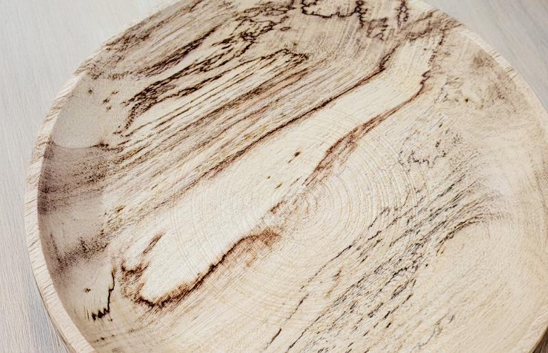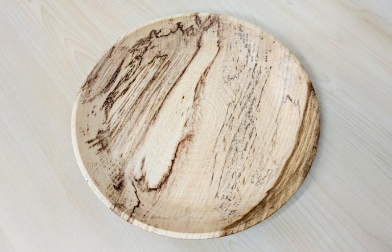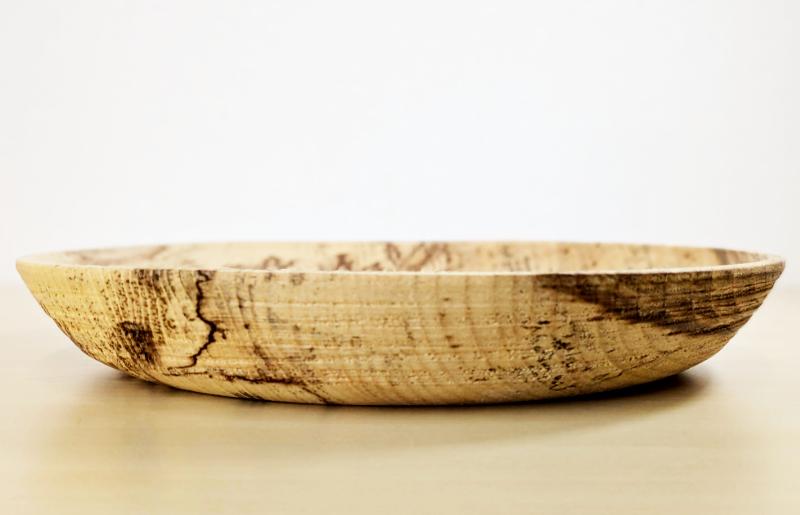 国産エノキのスポルテッド丸皿(大) 1枚 手作り1点物 099H3483