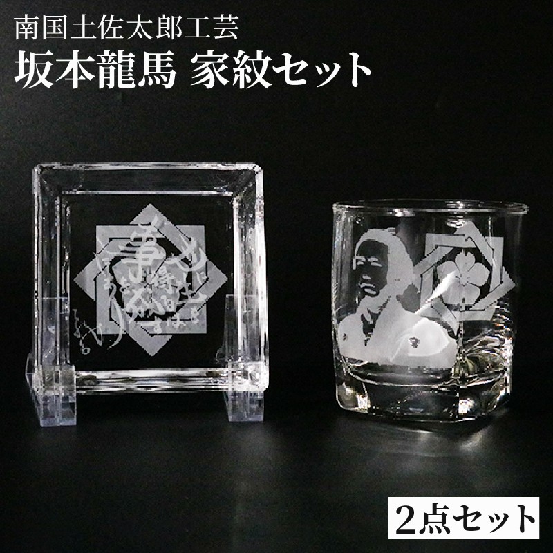坂本龍馬 家紋グラスセット(4)【コップ 食器 日用品 ガラス 竜馬 坂本竜馬 ギフト 人気 おすすめ 高知県 南国市】