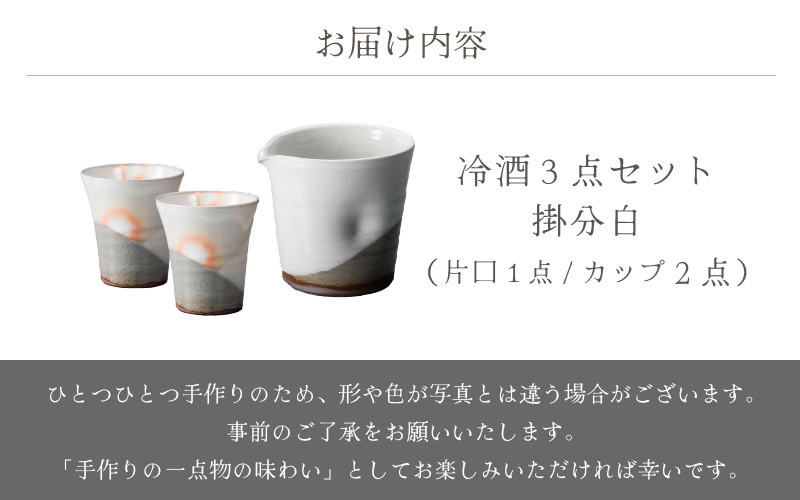 [e25-a024] 【越前焼】冷酒 3点セット 掛分白(片口、カップ × 2)拓逢陶房【コップ カップ 食器 ギフト うつわ 電子レンジ 食洗機 工芸品 陶芸作家 陶器 】