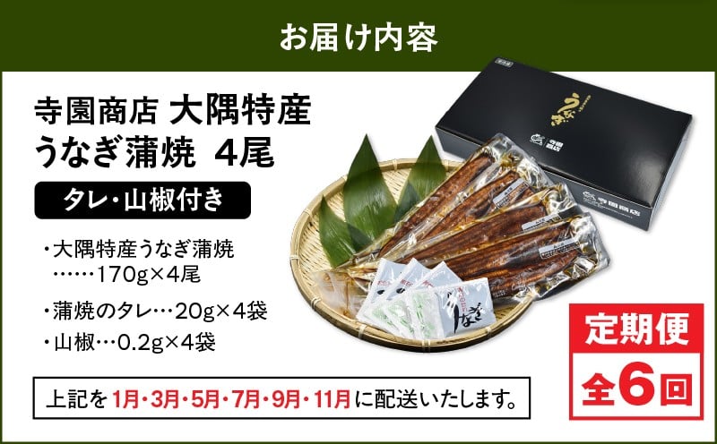 - 2486 【定期6回】大隅特産うなぎ蒲焼4尾(680g)【国産】 KN060-T10