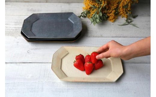 信楽焼 サビ釉 八角プレート (大)【古谷製陶所】