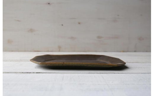 - 信楽焼 サビ釉 八角プレート (大)【古谷製陶所】