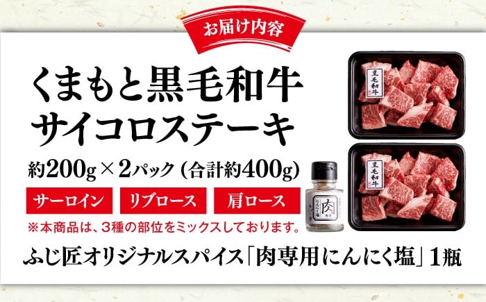 くまもと 黒毛和牛 サイコロステーキ 約200g×2 計約400g【富士商 株式会社】 [AYCJ003]