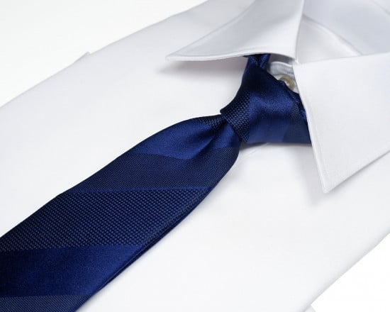 - 郡内織物「富士桜工房」シルクネクタイ紺無地 三段縞 ネイビー