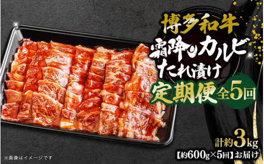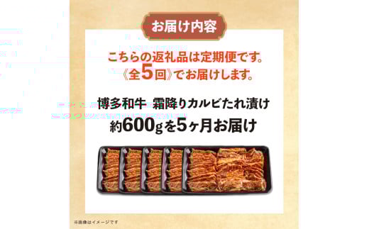 博多和牛 霜降りカルビたれ漬け 全5回定期便 約600g×5回 肉 お肉 焼肉 牛肉