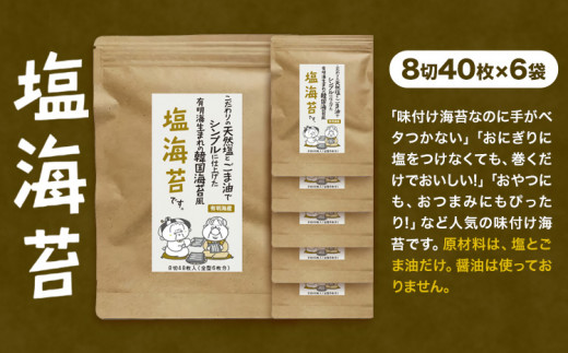 海苔 福岡有明のり 塩海苔 40枚 × 6袋 朝ごはん本舗《90日以内に出荷予定(土日祝除く)》福岡県 鞍手郡 小竹町 小分け 塩 有明海産 九州