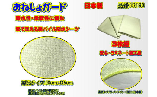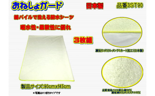 - 【介護用】おねしょガード 洗える防水シーツ 90×145cm(標準サイズ) 3枚組セット 3ST-90