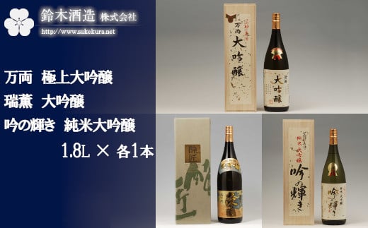 万両(極上大吟醸)・瑞薫(大吟醸)・吟の輝き(純米大吟醸) 各1.8Lセット 【11100-0250】