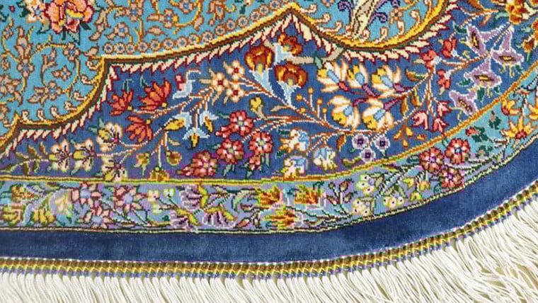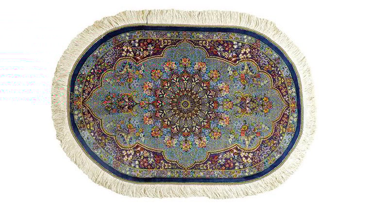 - 【限定1品】 ペルシャ絨毯 シルク100% 手織り ラグマット カーペット/ 高級 玄関マットサイズ 89×61cm 高品質 じゅうたん ラグ (FS-2114) メダリオン 青 エントランスマット 寝室 書斎 和室 床暖房 ホットカーペット対応 じゅうたん ラグ 高密度 逸品 美しい マット カーペット 芸術 エレガント インテリア モダン 上質