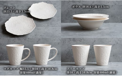 - 【切り紙文様のレリーフ】有田焼 樹葉蕾花 計14点セット【ワークショップワイズケイ】 切り紙作家「矢口加奈子」とのコラボ ギフトにもおすすめ 皿 カップ マグカップ ボウル レスト セット A240-5