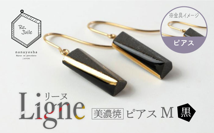 【美濃焼】 Ligne -リーヌ- ピアス M 〈黒〉 【七窯社】 アクセサリー おしゃれ [TAP042]