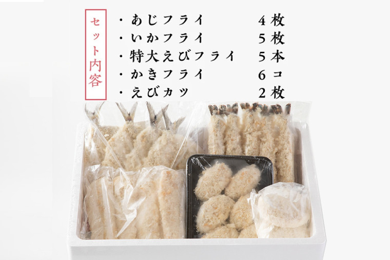 - 魚介 惣菜 5種 しあわせ セット ( エビフライ あじフライ いかフライ かきフライ えびカツ ) カジマ 大人気 魚介 海老 海鮮 冷凍保存