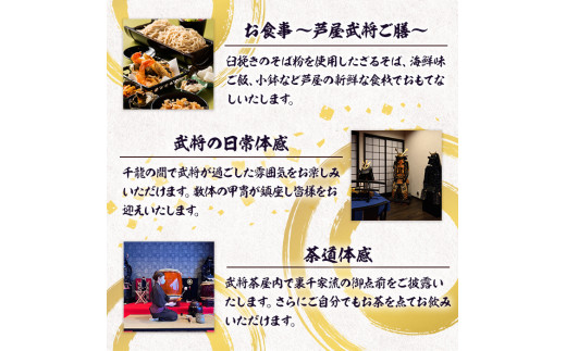<芦屋町山鹿 武将茶屋>武将ご膳ランチチケット(2名) 体験 チケット 食事券 ランチ 御膳 武将 茶道 撮影 体感 ペアチケット 【パルセイユ】as04-010